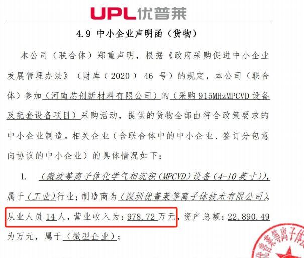 此外,根据此次中标文件《一标段中小企业声明函》披露,深圳优普莱从业人员14人,营收仅为978.72万元,但上述数据未披露具体年份和时间。