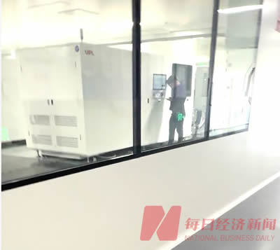隔着生产车间的玻璃可以看到,数台印有“UPL”字样的大型设备整齐列阵。每经记者看到的设备显示屏处于黑屏状态。生产车间内,有头戴安全帽的工作人员正在设备间穿梭。